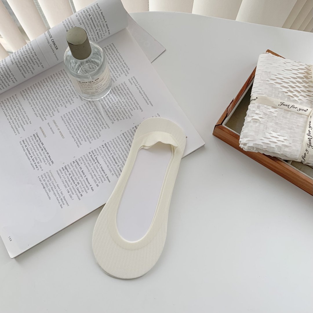 Mẫu tất nữ mới Xuân/Hè 2025, cổ thấp, không lộ, có dải lót bên trong, đế cotton chống trượt bằng silicon, tất thuyền cho nữ Màu trắng
