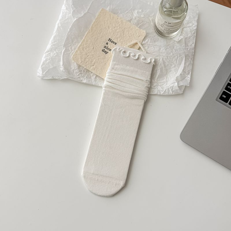 Tất Vớ mỏng nữ mùa xuân/hè mới, kiểu Nhật Bản, màu trơn, viền bèo, vớ cao đến giữa bắp chân, kiểu sinh viên, đa năng, vớ ống rộng Màu trắng, một cỡ phù hợp với tất cả