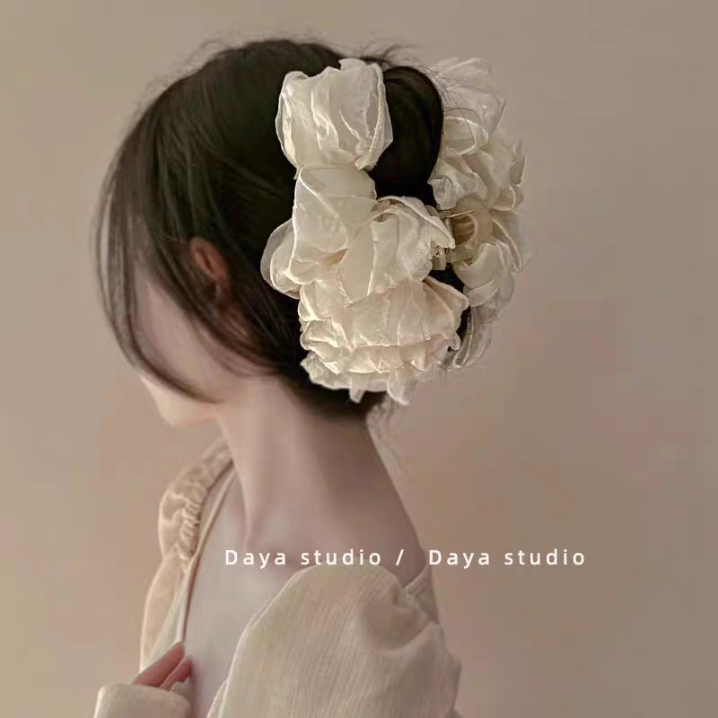 Kẹp tóc phồng màu trắng kem giúp tóc dày hơn