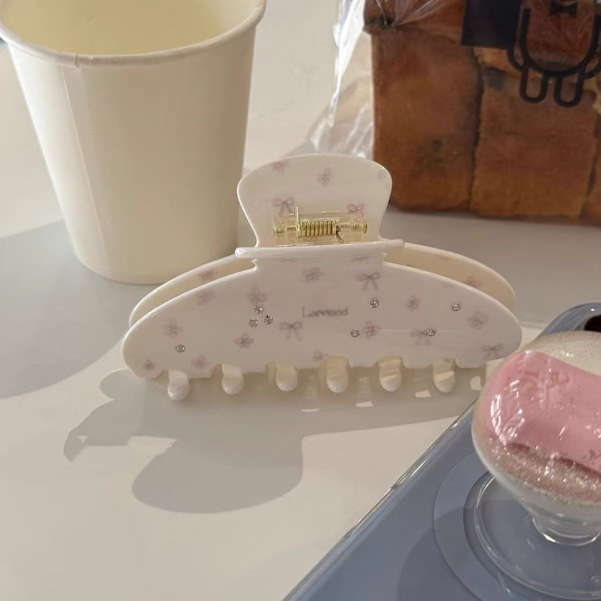 Kẹp mỏ vịt chấm bi trắng sữa