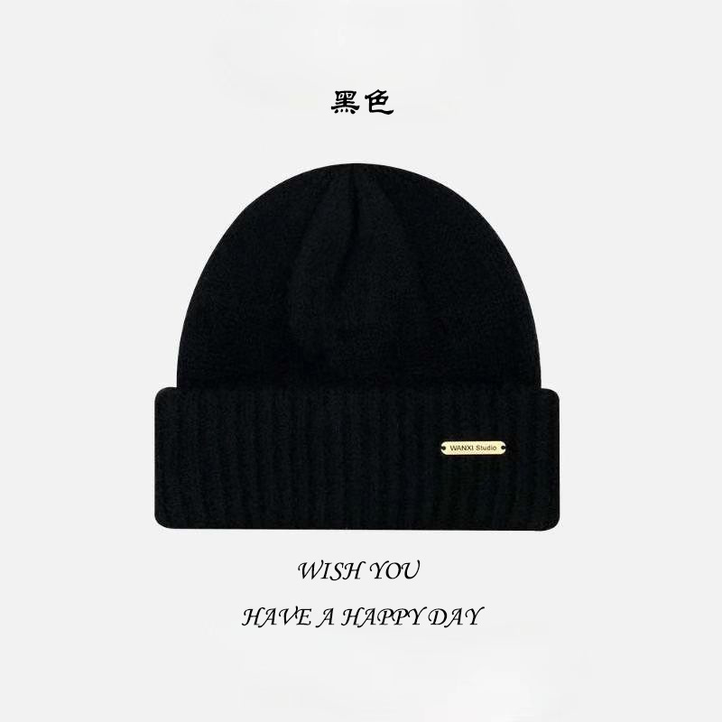 Mũ bịt tai len ấm màu đen