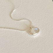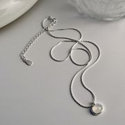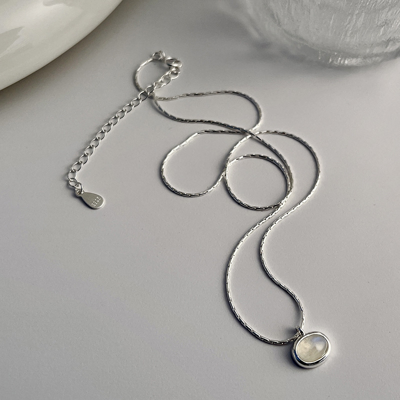 Dây chuyền đá mã não trắng hình bầu dục bạc Sterling S925 dành cho nữ - Dây chuyền xương rắn đơn giản, sang trọng, cao cấp với dây chuyền xương đòn thanh lịch