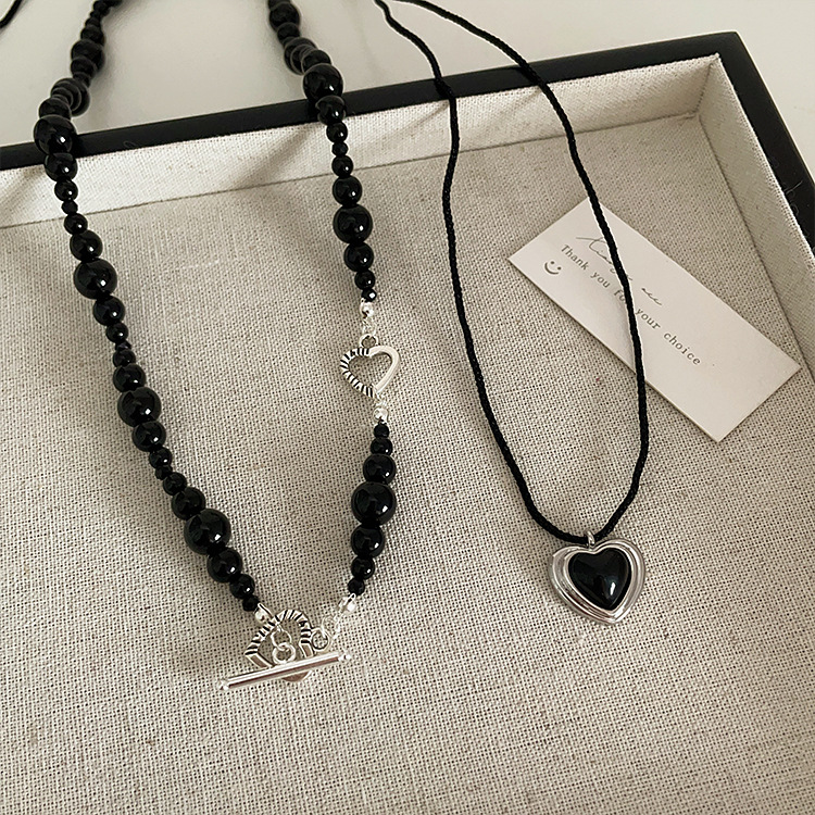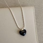 Dây chuyền mặt hình trái tim với chữ cái nhỏ giọt màu đen dành cho nữ, kiểu Hàn Quốc, đơn giản, đa năng, thời trang, hợp xu hướng và thanh lịch.