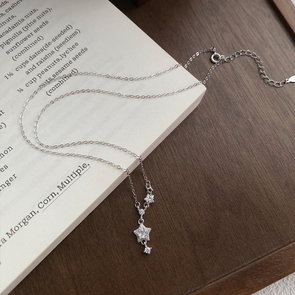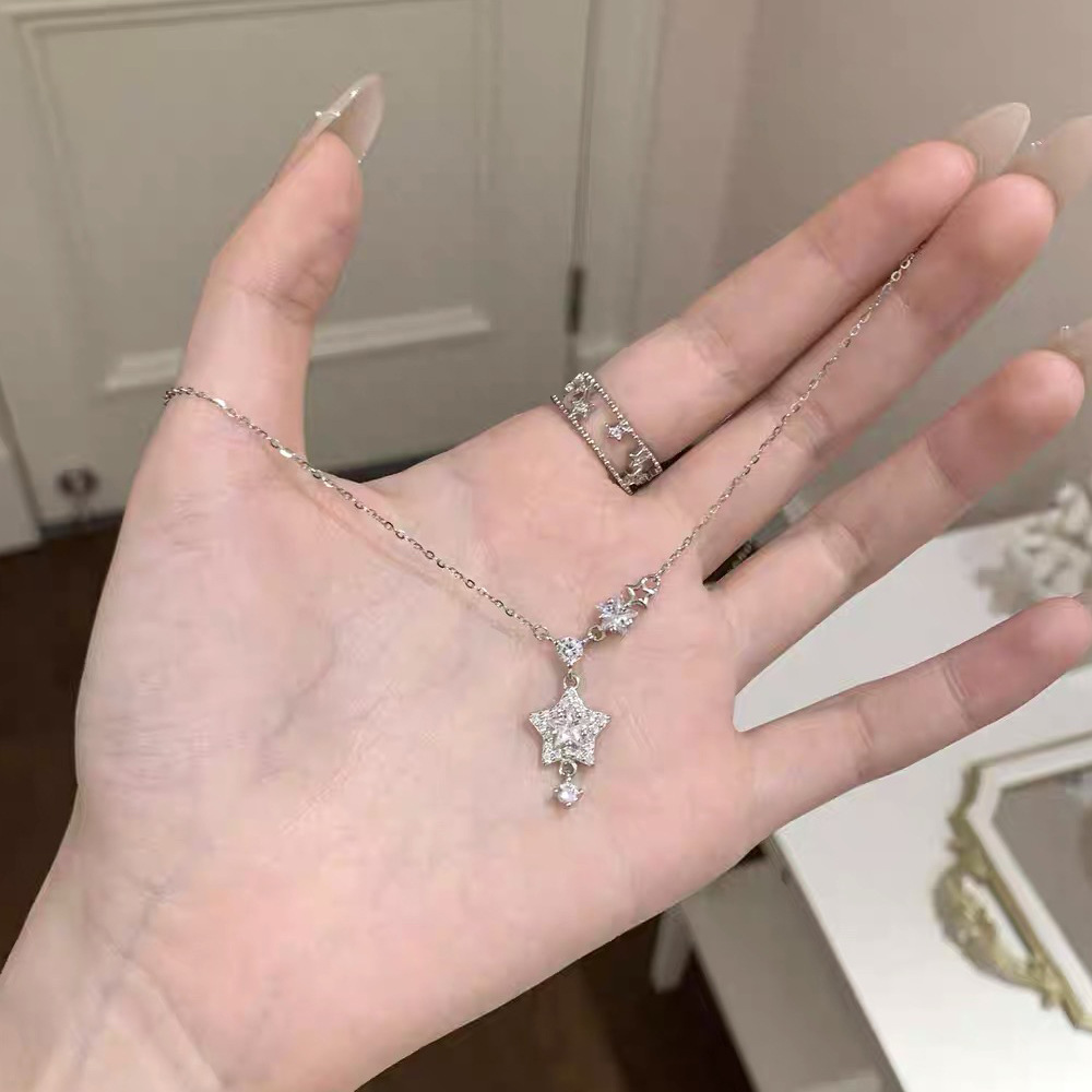 Dây chuyền ngôi sao kim cương lấp lánh bạc Sterling S999 dành cho nữ - Dây chuyền xương quai xanh sang trọng, tinh tế và cao cấp, dây chuyền độc đáo và phong cách
