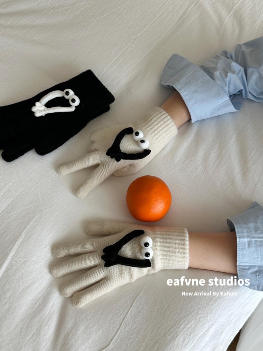 Găng tay mùa đông kiểu Nhật Bản dành cho nữ sinh, họa tiết hoạt hình,, dày dặn và ấm áp - 739370031168 Một cỡ, màu trắng ngà