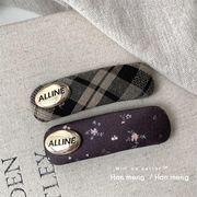 Hai chiếc kẹp hình vuông màu nâu kẻ ô vuông với họa tiết hoa màu xám tím.