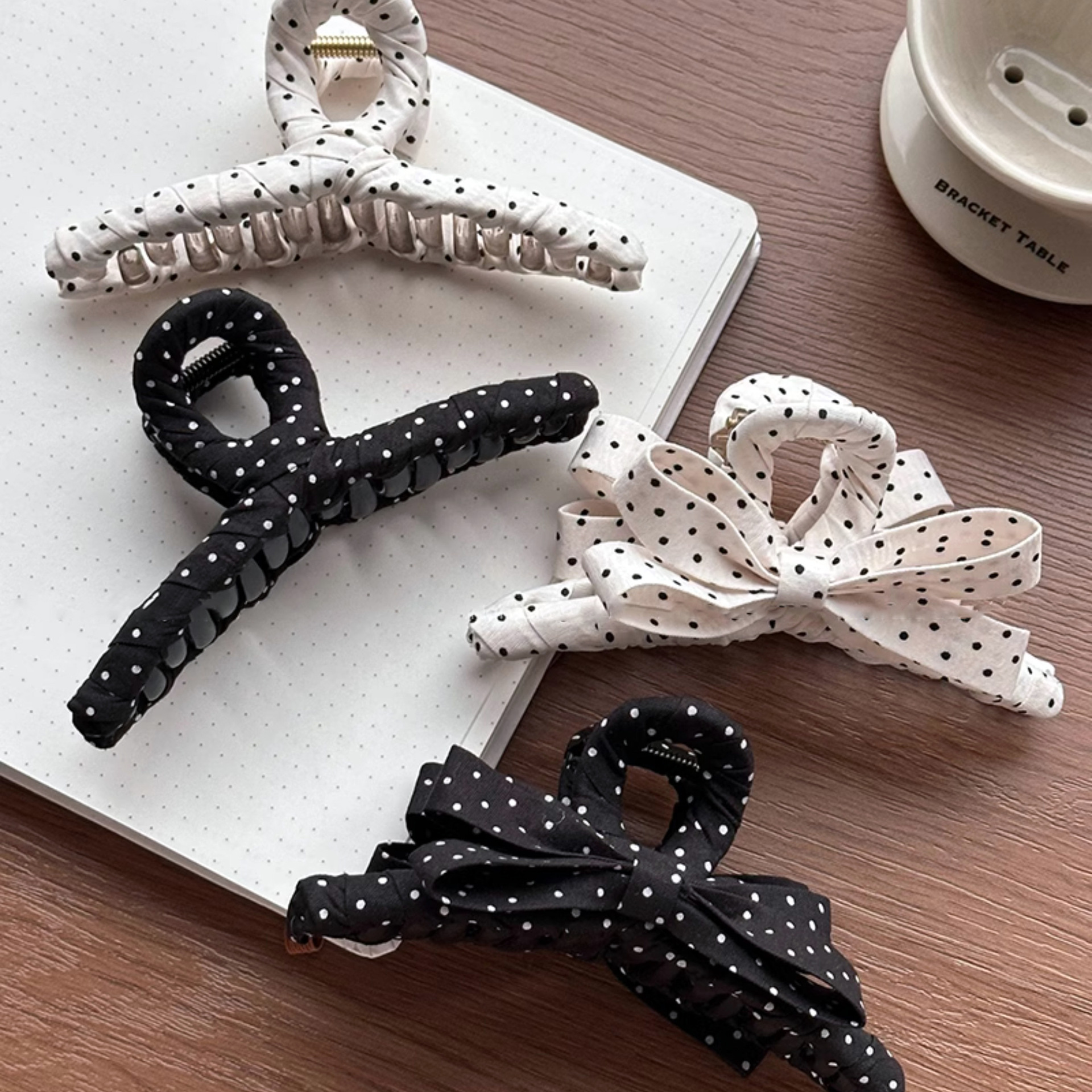 Kẹp gắp chấm bi nơ trắng