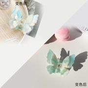 Kẹp tóc đổi màu hình bướm màu xanh da trời 7.5CM, hai lớp cao cấp phong cách mới mùa xuân hè của Pháp, phụ kiện tóc ngọt ngào tươi mới dành cho nữ