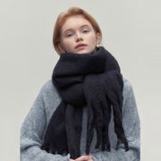 Khăn choàng 45*230cm, màu đen dài ấm áp, mềm mại, kiểu dáng Hàn Quốc, đa năng cho mùa thu đông