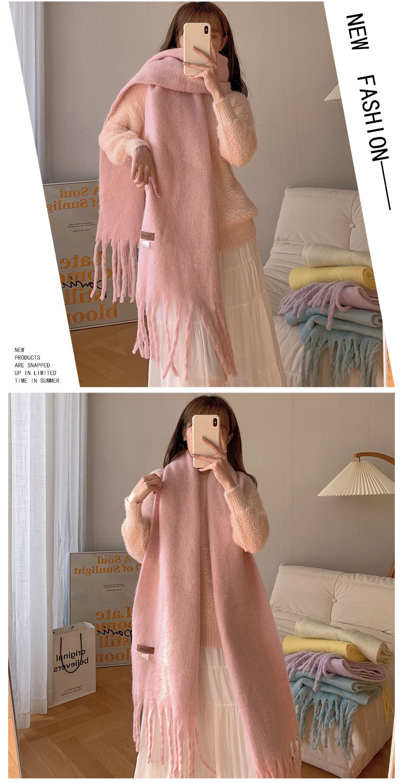 Khăn choàng cổ 37*230cm màu hồng mơ mộng cho phụ nữ vào mùa đông, mềm mại và ấm áp, chất liệu giả cashmere, khăn choàng dài cho học sinh, khăn choàng cổ đa năng