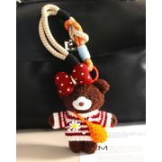Móc khóa móc túi xách Áo len màu đỏ sẫm, túi đeo chéo, gấu nâu