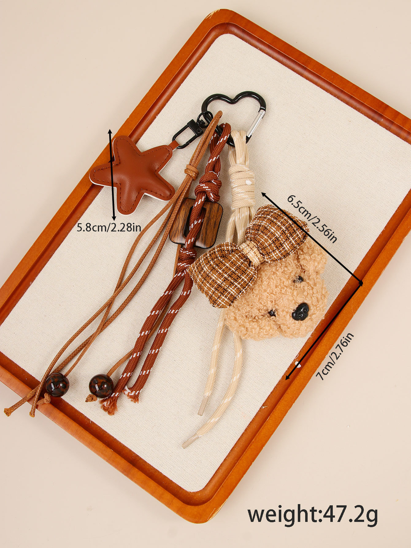 Móc túi xách Chú cún bông màu nâu có nơ