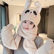 Mũ choàng tai thỏ có thể cử động, kèm khăn quàng cổ vào bao tay xám trắng