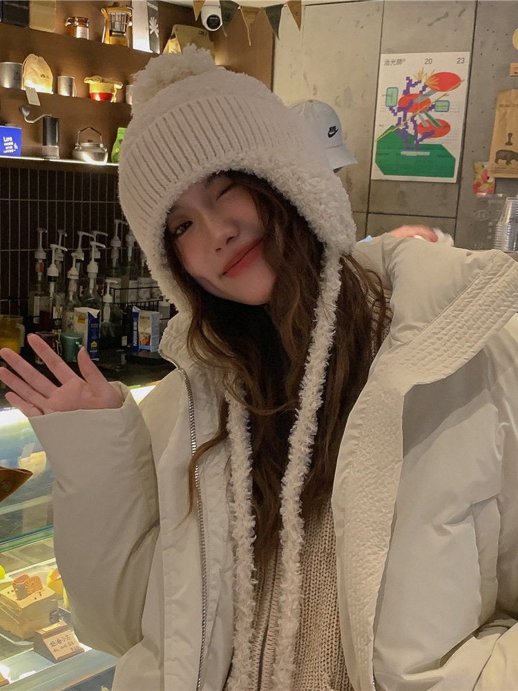 Mũ len đan len tua rua phong cách Hàn Quốc dễ thương, mũ len dày dặn ấm áp dành cho nữ - Màu be (56-58cm)