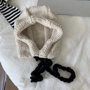 Mũ len trùm đầu len đan dày cùng kiểu dáng của JENNIE kèm bịt tai giữ ấm mùa đông - M (56-58cm) màu be (dây đen)