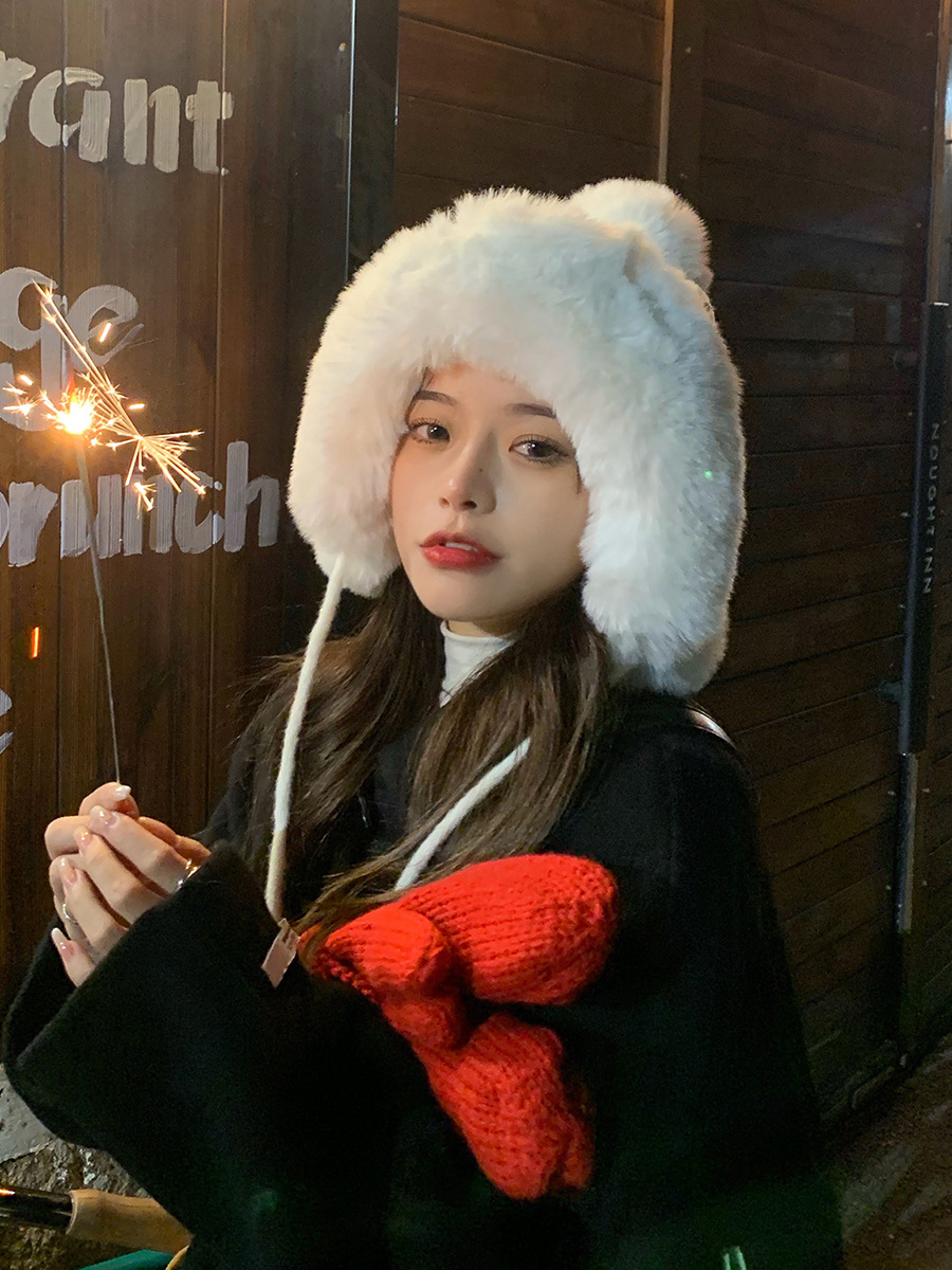 Mũ bịt tai ấm áp màu trắng