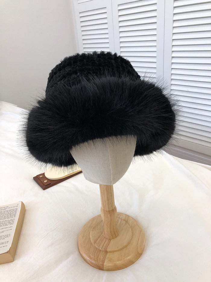 Mũ vành rộng đen bằng vải nhung phong cách Hàn Quốc, che kín mặt, bảo vệ tai, giữ ấm mùa đông, hai lớp, mũ xô dày - 693220206785 - HGP001KM