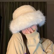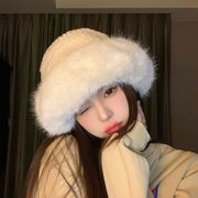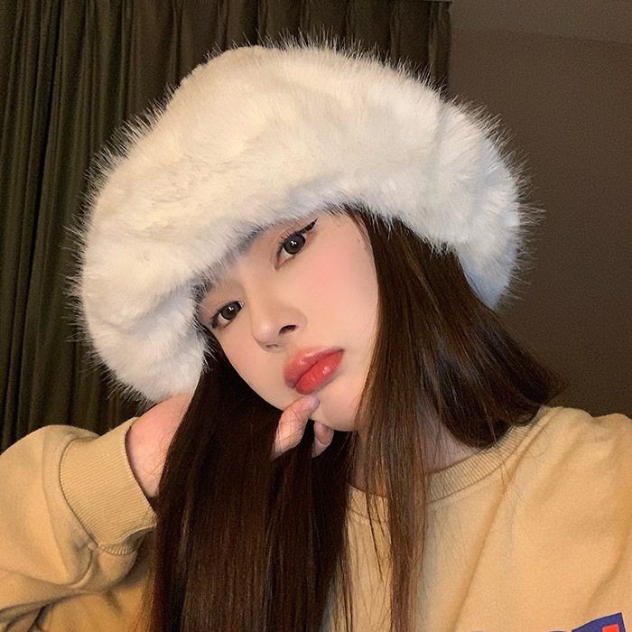 Mũ vành rộng trắng bằng vải nhung phong cách Hàn Quốc, che kín mặt, bảo vệ tai, giữ ấm mùa đông, hai lớp, mũ xô dày