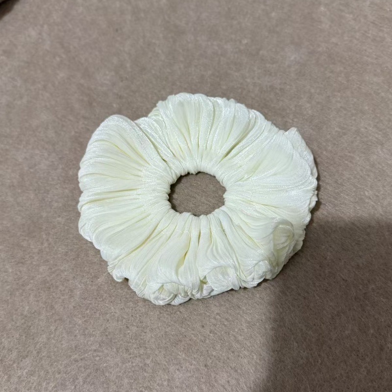 Scrunchies xếp ly bằng lụa satin màu trắng kem