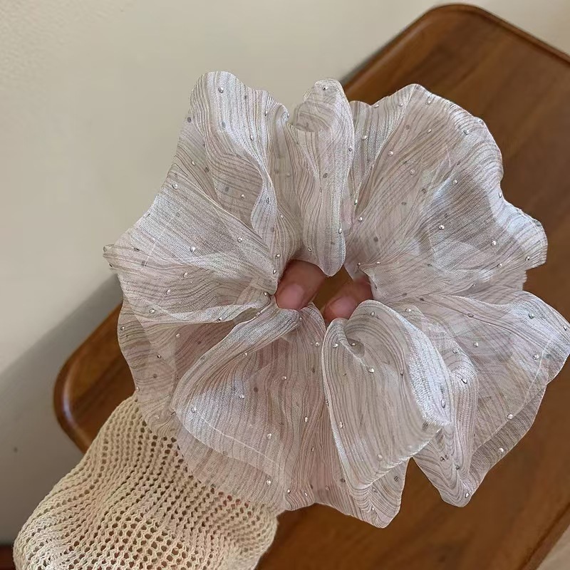 Scrunchies bằng vải tuyn màu be đính đá