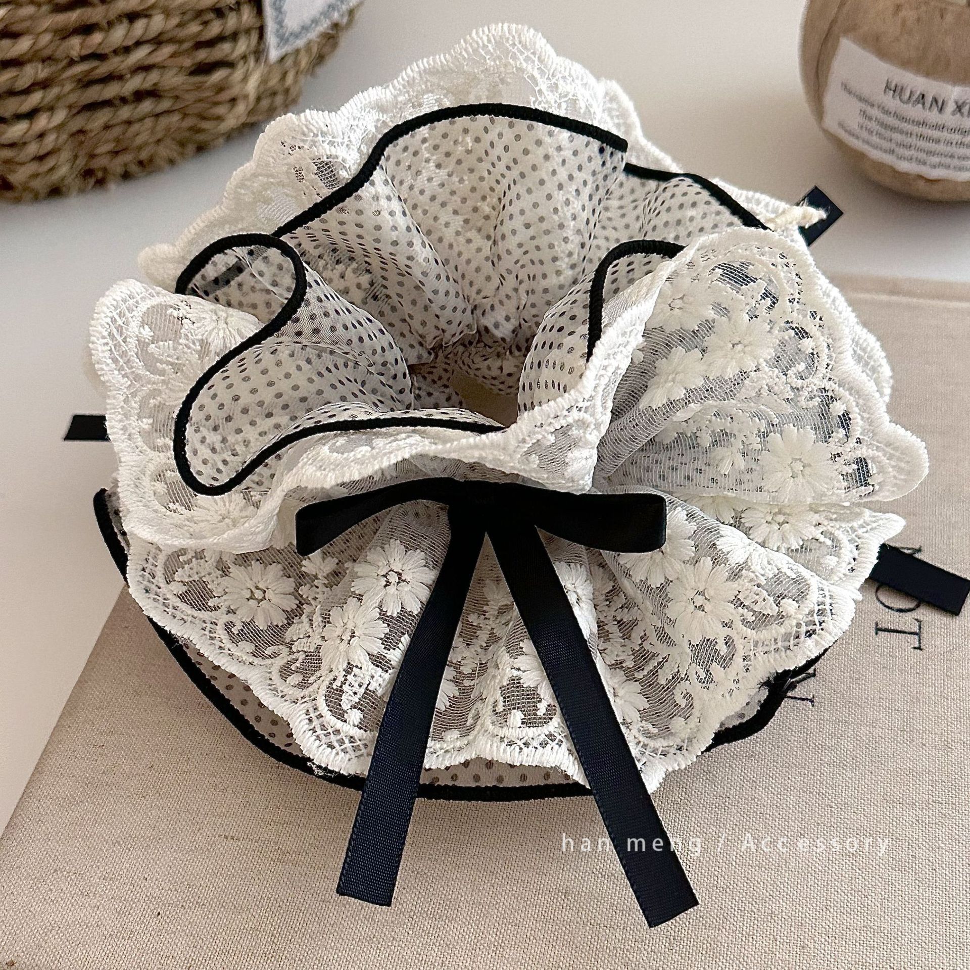 Dây buộc tóc bằng ren satin Pháp