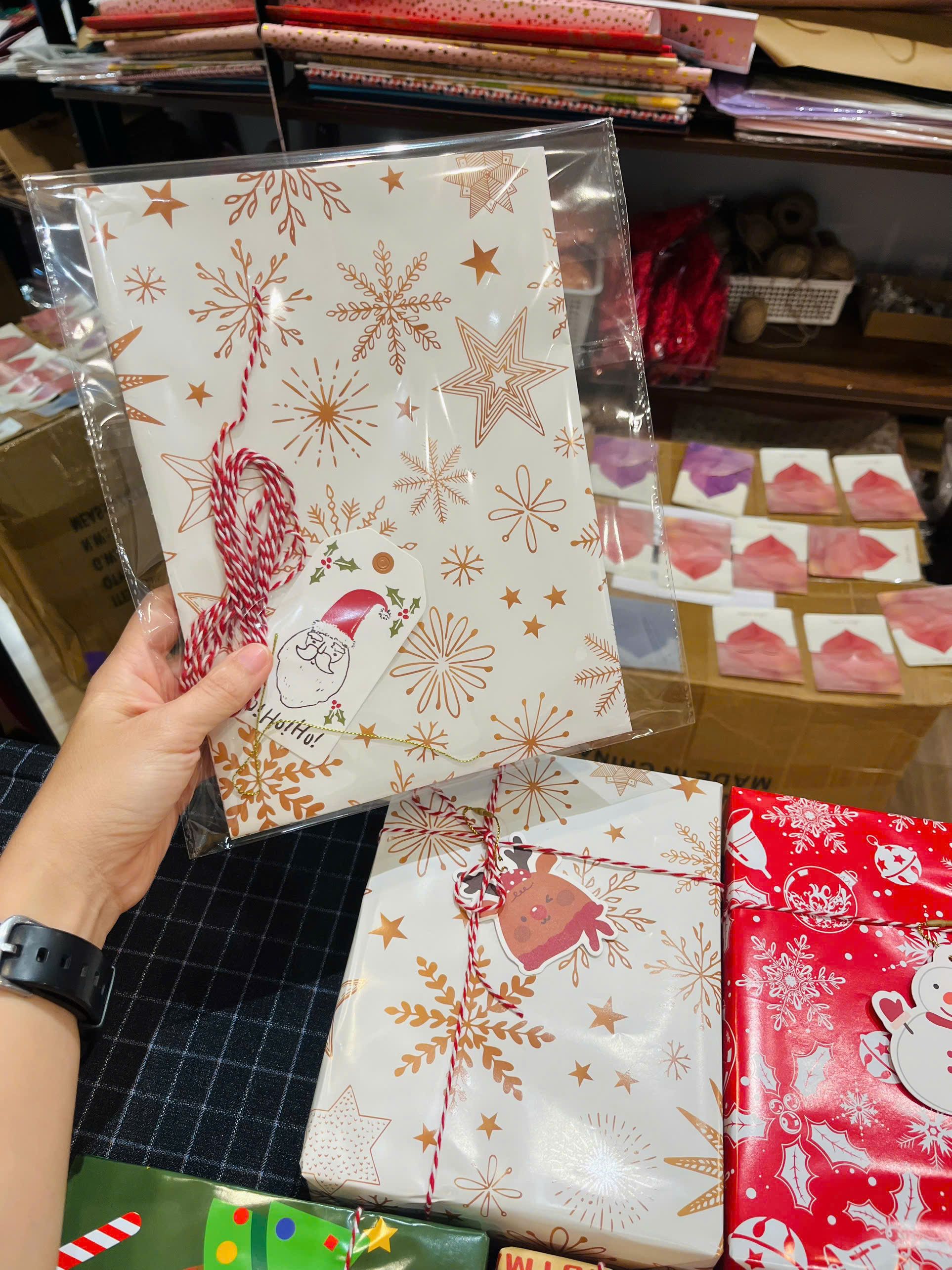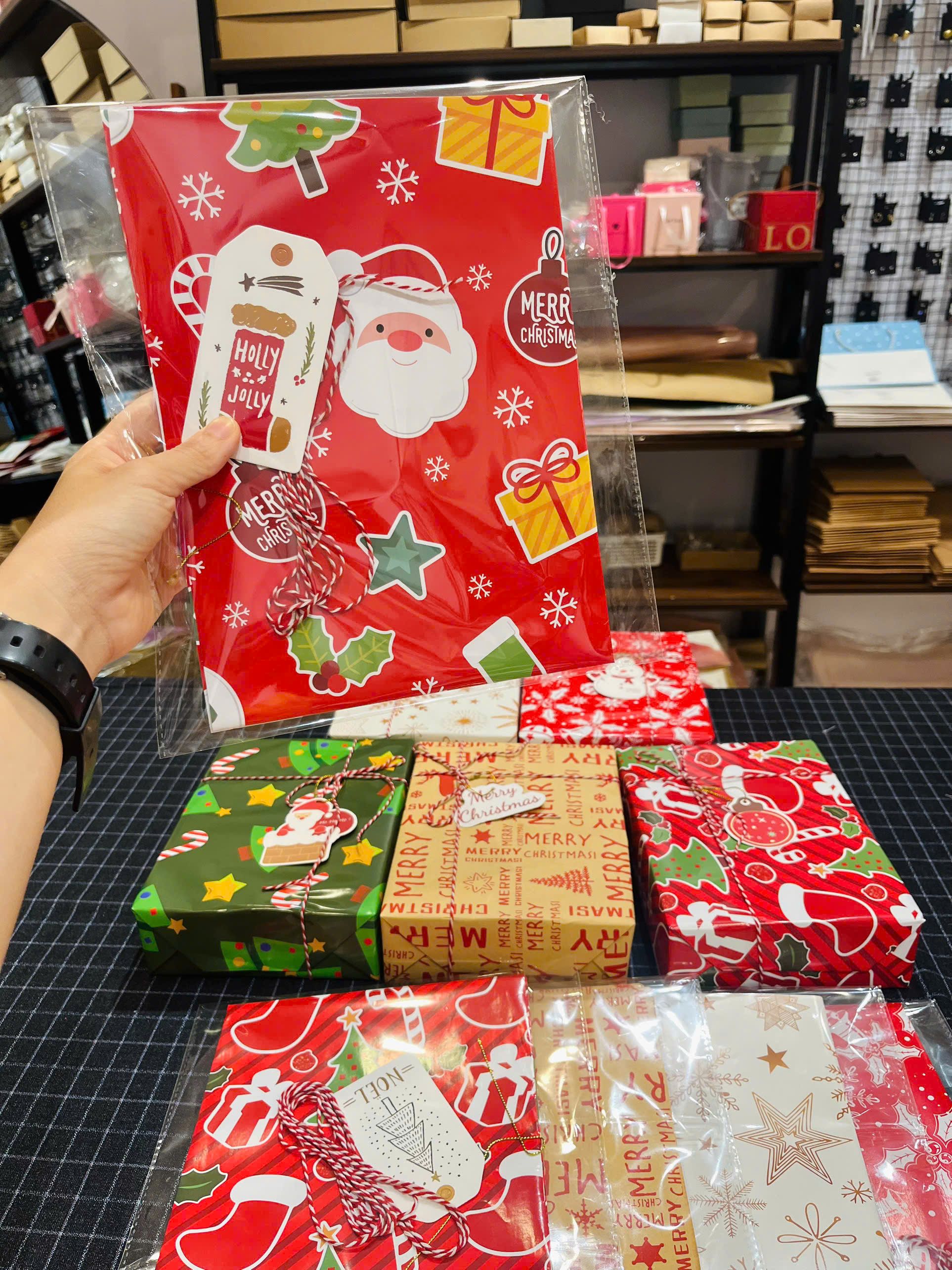 Set giấy gói quà noen ( giấy+dây+tag trang trí hộp quà)