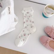 Tất Vớ dài đến bắp chân viền ren mùa xuân/hè dành cho nữ, kiểu dáng học sinh Nhật Bản, ngọt ngào, không đường may, vớ lưới hoa nhỏ Một cỡ duy nhất, màu trắng