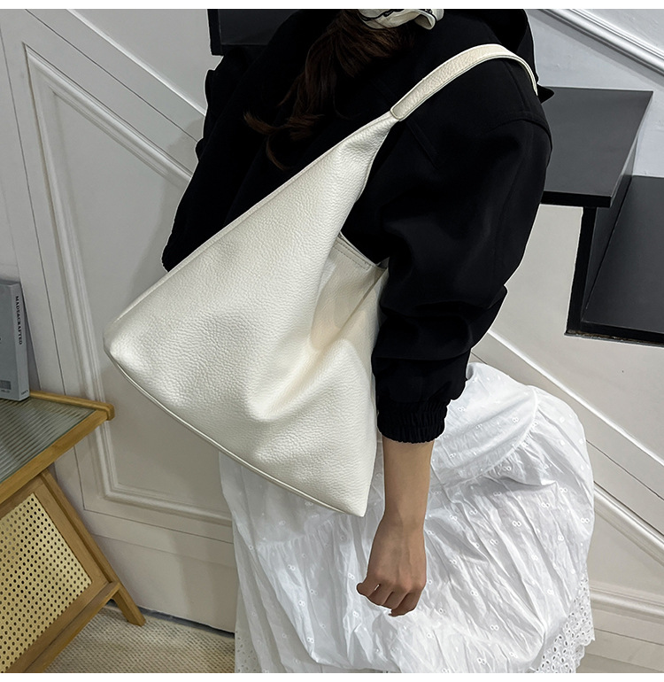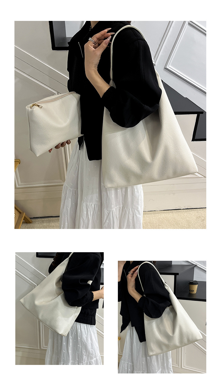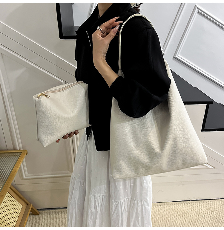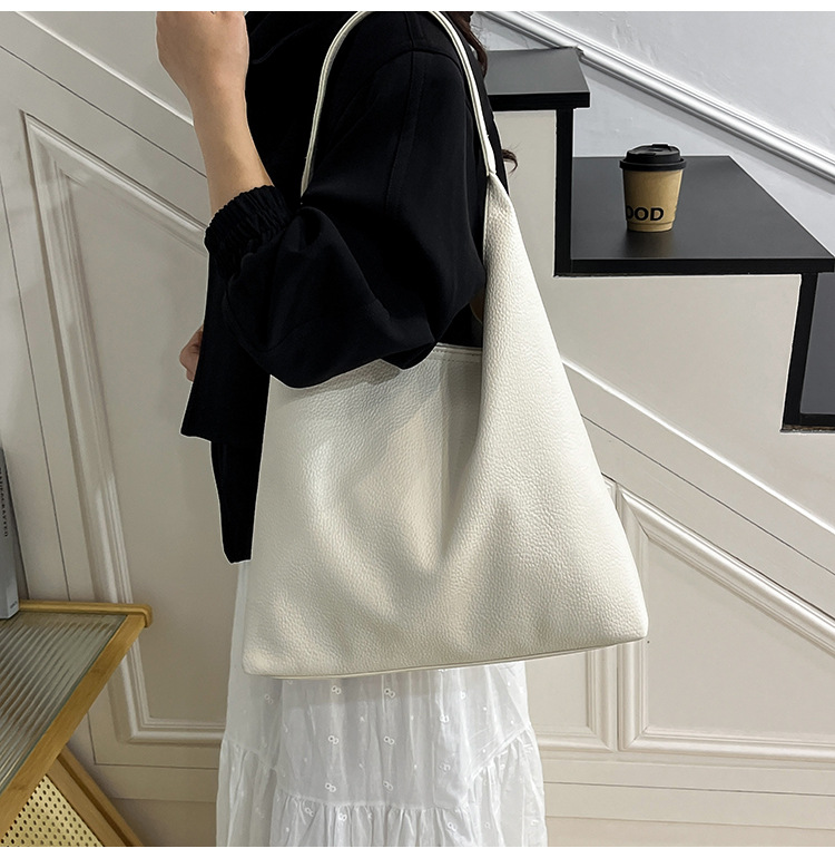 Túi đeo vai thời trang phong cách mới 2025 túi tote họa tiết đơn giản dung tích lớn màu trắng