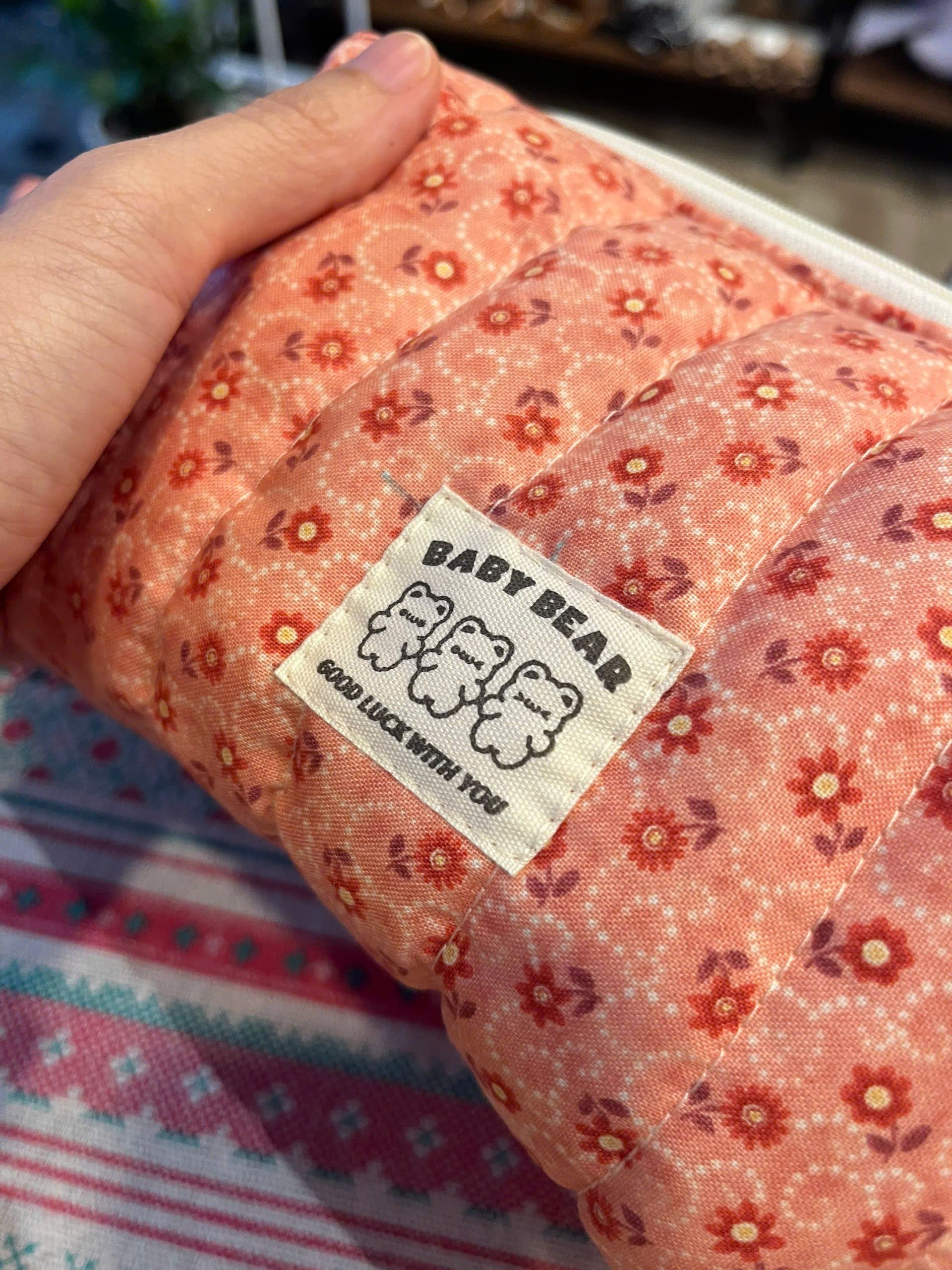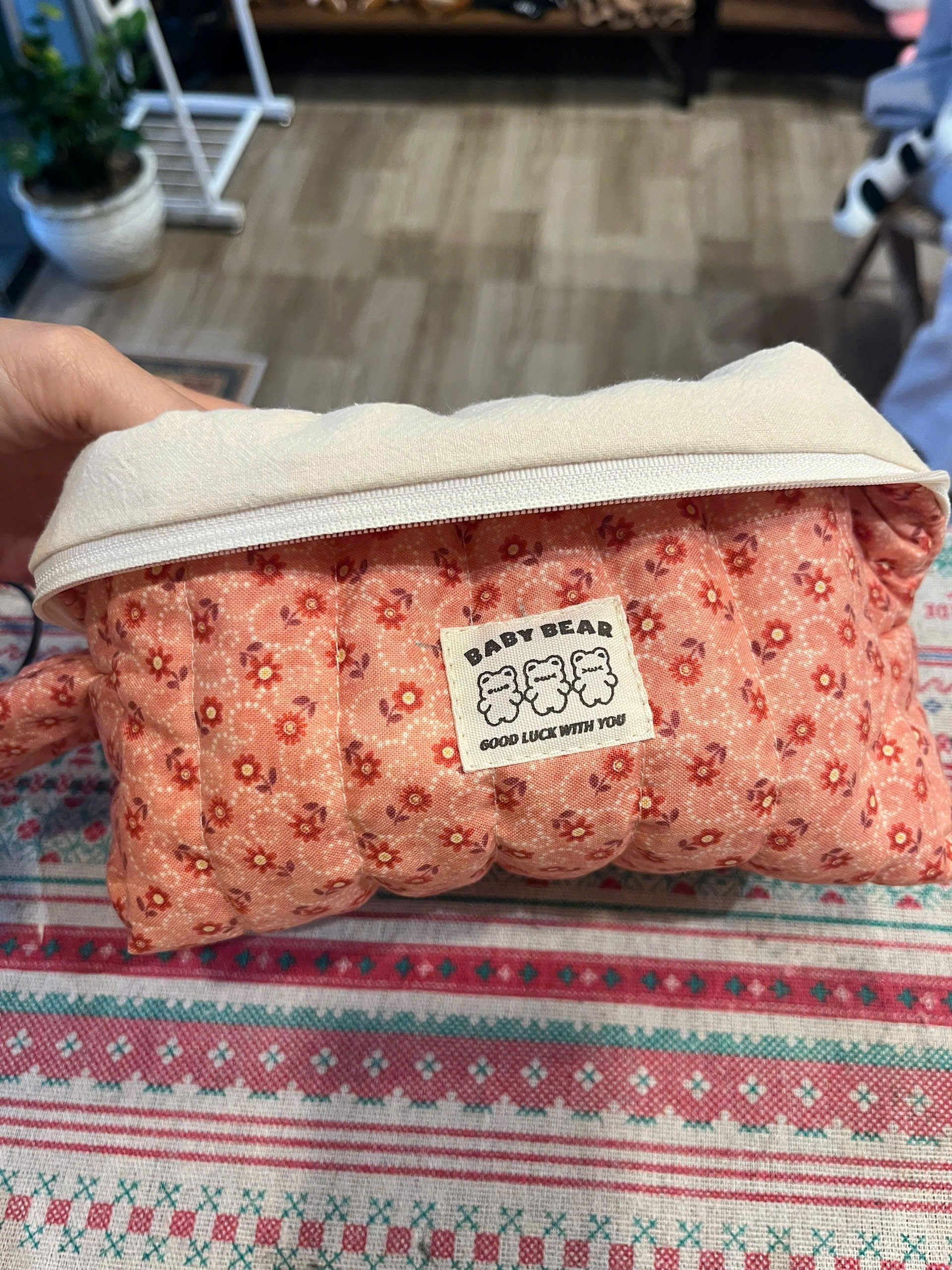 Túi mỹ phẩm hoa nhí chần bông siêu đứng form 20x13cm