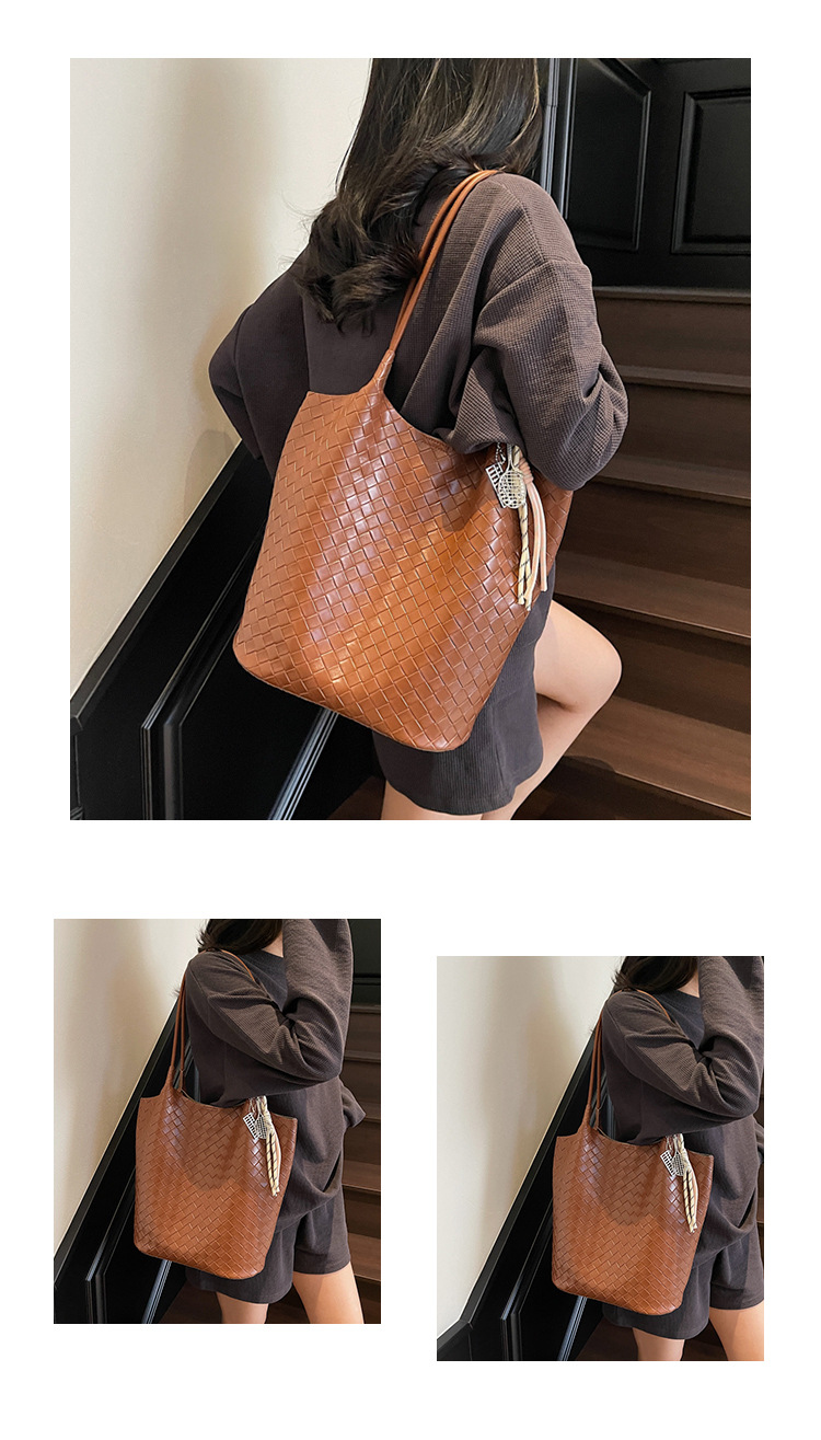 Túi xách nữ họa tiết đan chéo, kiểu dáng bucket. Túi đeo vai đi làm dung tích lớn, mẫu mới 2025. Nâu (có kèm móc khóa)