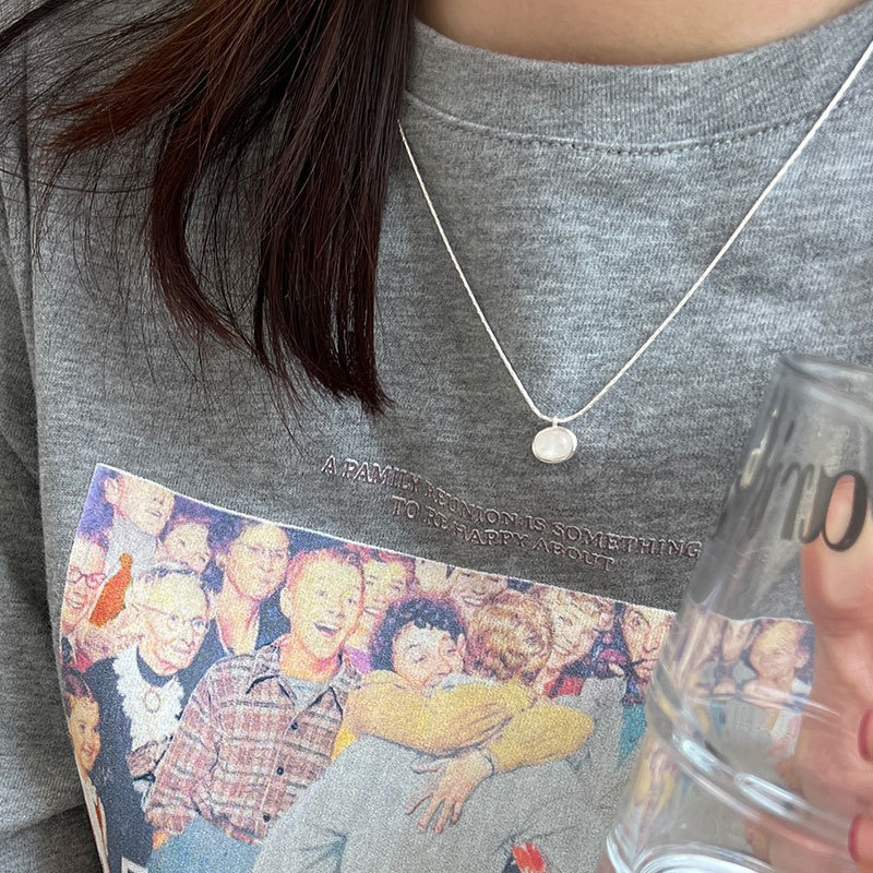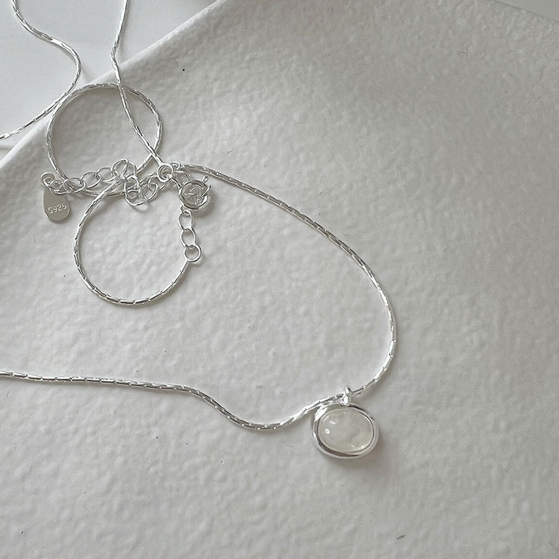 Vòng cổ đơn giản sang trọng cao cấp S925 sterling silver oval trắng chalcedony.