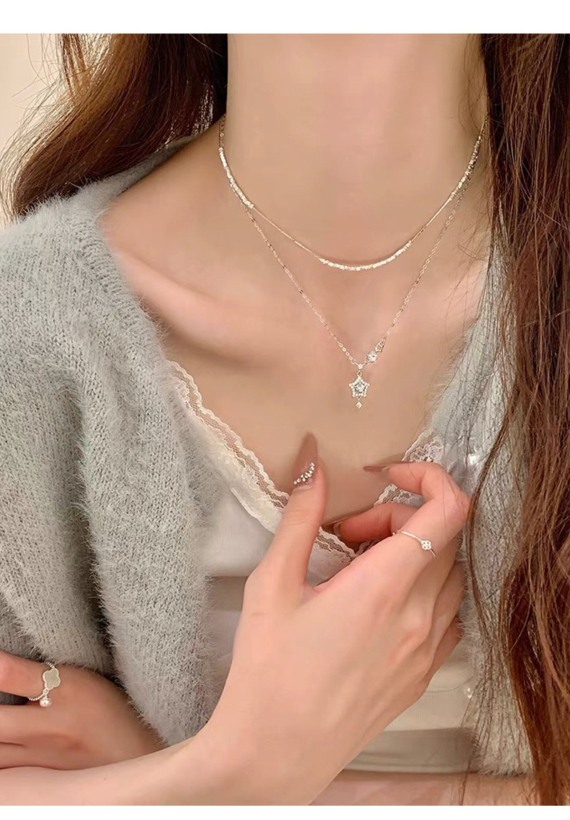 Vòng cổ sang trọng tinh tế cao cấp bạc lấp lánh kim cương ngôi sao
