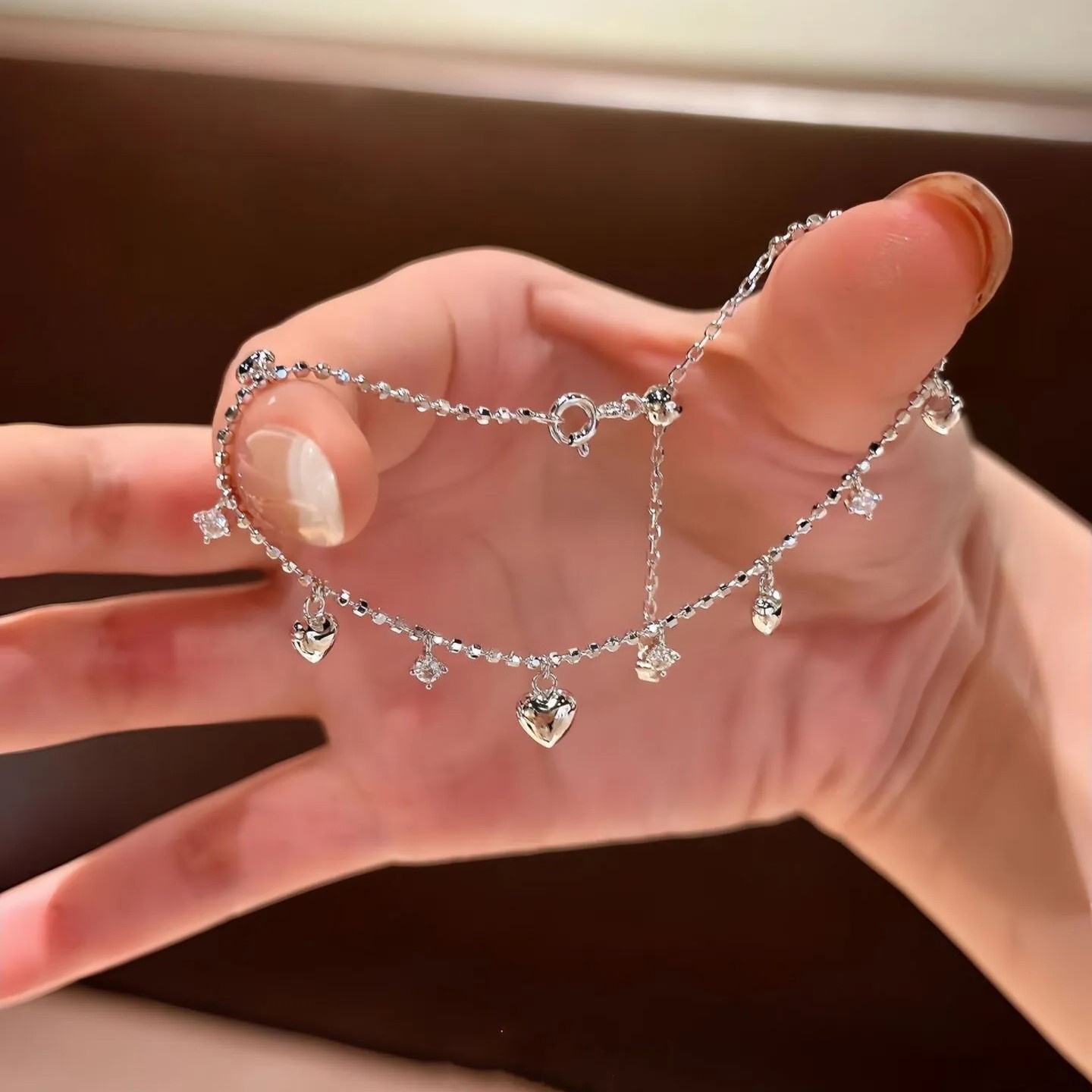 Vòng tay hình trái tim zircon mạ vàng